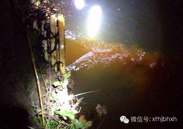 #湘潭环境#2014年8月14日晚7:30湘潭环保协会副秘书长毛建伟接群众举报,发现黄色带油性污水从护潭乡二级渠排入湘江,立马沿牟渠寻找,发现偷排点立刻联系雨湖环保。8点工作人员赶到响水乡现场,并已找到暗排口,正在提取水样,湘潭矛戈立马发出通知,联系湘潭小雪无痕、上上若树、湘潭环保迪迪、湘潭环保轩轩爸等六人(以上都为网名)火速集结赶到现场,和环保局监察支队人员一起继续排查偷排企业,初步怀疑是附近一家金属公司暗设4公里管道偷排酸性废水,九华开发区,湘潭市环保局领导连夜赶到现场处置,将依据检测结果做出处罚一下是现场图片: