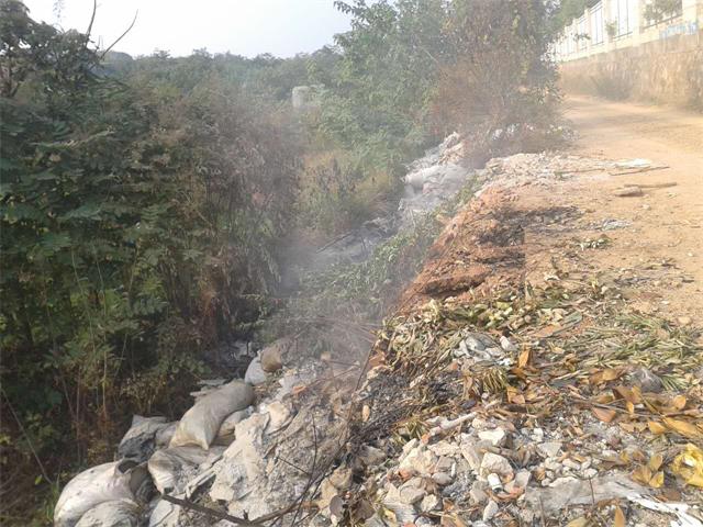 10月23日在市国土局围墙边发现正在焚烧的垃圾,现场没有发现当事人,向雨湖区区长热线举报,并报119火警,消防来人及时把火扑灭。