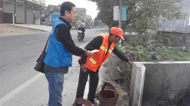 10月28日,湘潭环保协会抗霾巡查组在姜畲镇泉塘村马路边发现垃圾池有垃圾在烧,村里卫生员在提水灭火,据他说是流浪汉点的火,巡查队员沈政伟一起提水灭火,并发放“焚烧垃圾危害健康~致环卫工人的一封信”,大力宣传大气污染治理特护期环境保护。