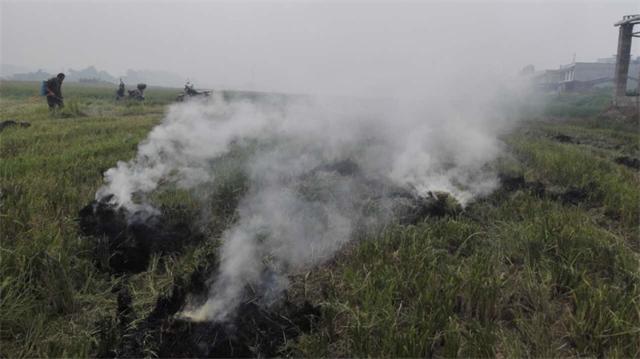 巡查到潭锰路边,发现响水乡狮山村、红星村多处焚烧稻草!浓烟滚滚!矛戈询问村民烧稻草的原因,原来是当晚预报有雨,很多村民急着烧掉田里还大半未干透的稻草,所以烧起来冒黄烟,烟雾特别浓!造成湘潭河西烟雾呛人,市民呛声!!