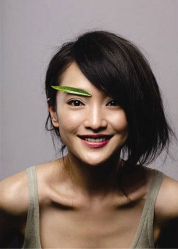 不普通的是,周迅近期的封面也都是和环保亲密接触的。有一组环保大片在网上流传得很疯,在其中,周迅脚踏汽水罐,带出“循环再用”的信息;还有把竹叶粘在眉毛上竹叶美人的造型。为什么是竹叶而不是鲜花呢?周迅解答:“环保从美化家庭环境开始,竹子比同等高度的其他植物要多产生20%的氧气,我就想到用竹叶做个小小的道具。”