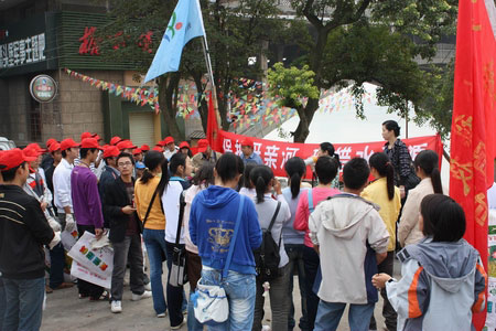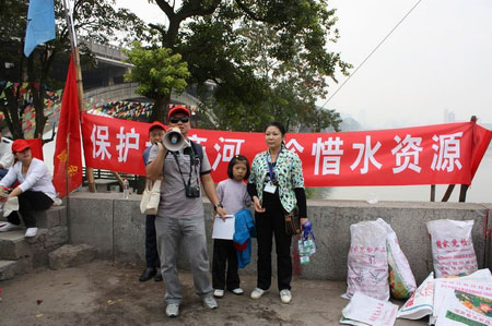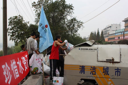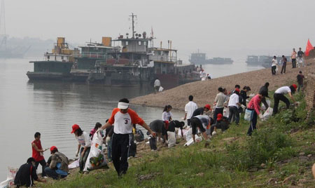 共青团湘潭市委员会倡议的湘江大扫除活动,于2009年11月8日上午九时启动。次此活动旨在为母亲河湘江“洗脸”,在湘江的枯水期捡去河道上的垃圾,同时,为我市创建“两型社会”、全国文明城市的创建推波助澜。 协会组织了近百名会员参与活动,并且提供了200多套手套、编织袋等工具;活动开始前,协会的活动负责人李怀英、毛建伟还向参加人员介绍了注意事项。 正式启动后,会员们戴着小红帽、白手套,拿着火钳、筷子、编织袋等工具,在湘潭一大桥至三大桥湘江西岸河滩上排开,捡拾河滩上的垃圾。
