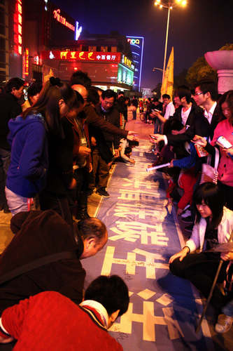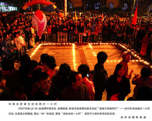 3月27日晚8点半,由湘潭晚报、湘潭环境保护协会、新浪乐居湘潭站联合发起的“莲城与低碳同行”——2010年地球熄灯一小时活动在莲城商业步行街举行。