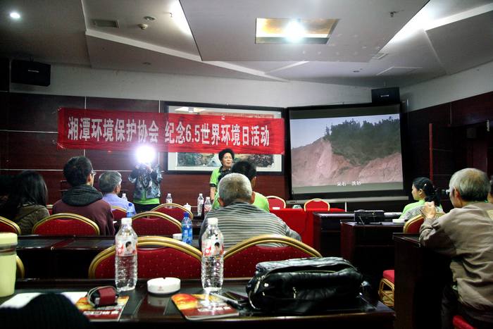 上午组织观看了湘乡市环保协会摄制的《非法采砂、洗砂现场实录》,表彰了2010年的优秀会员。下午组织了部分人员到受损严重的非法采砂点实地察看。