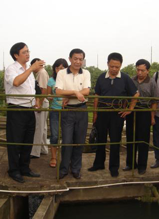 协会副理事长王国祥{右二}在环保世纪行现场