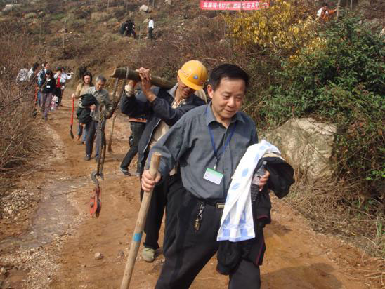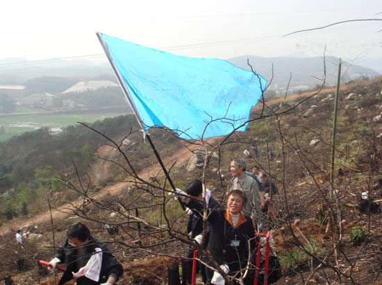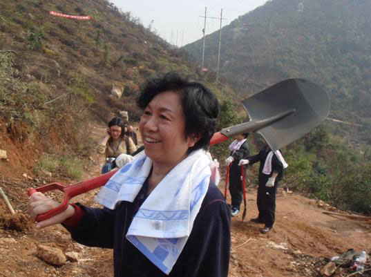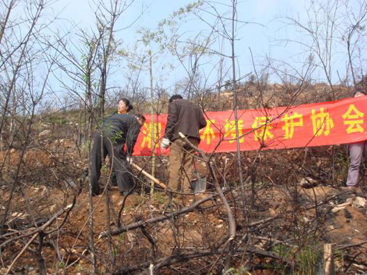 2008年3月18日在理事长刘德莲女士的带领下,协会部分会员参加了市里组织的昭山楠木村植树活动。为长株潭“绿肺”栽下一株株新苗,为保护母亲河生态林建设出力添绿.