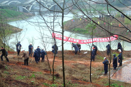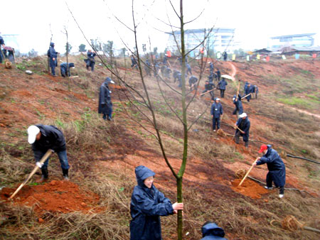 3月12日上午,环保协会会员在副理事长王国祥、王秀连的带领下,参加了市统一组织的植树活动。当日,阴雨霏霏,会员们于上午9点按时到达指定场地后,会员们披上雨衣,挥锄劳动。有许多会员说,我们栽上这片林,以后还要来参与管理,保证棵棵成活。