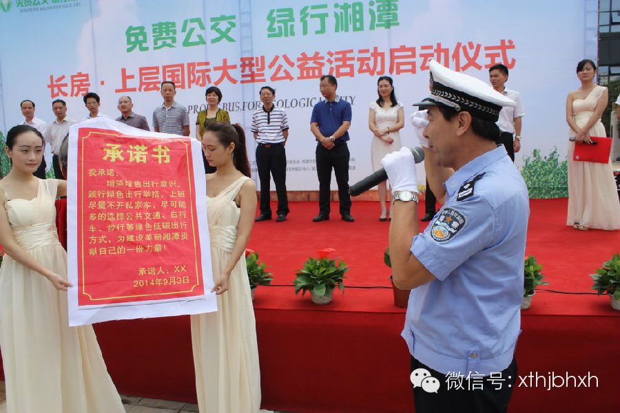 为此湘潭环保协会组织了团体会员、个人会员一共100多名人员参与了于9月3日上午9点在长房上层国际营销中心举行的“绿行湘潭——大型公益活动”启动仪式。仪式邀请政府高层、商界翘楚、社会名流等到现场,共同发出乘坐公交、绿色出行的活动倡议。