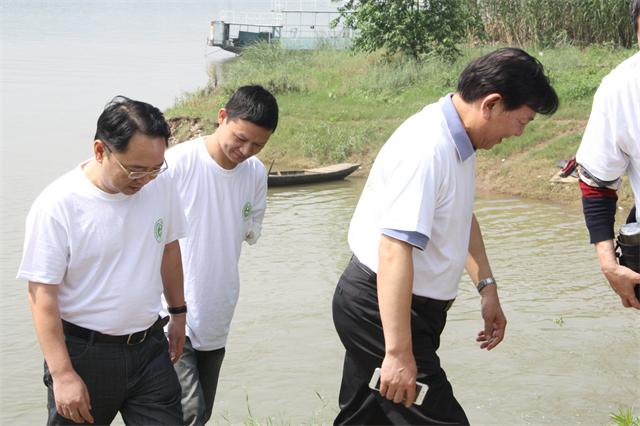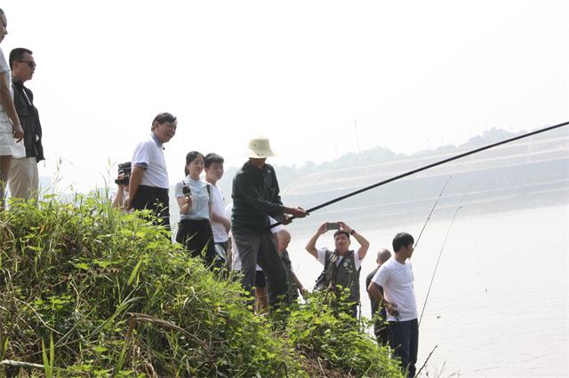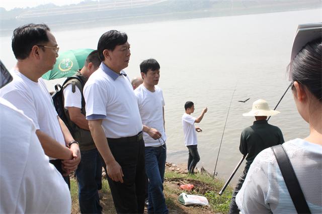 启动仪式后,我们这组一行人,在协会宋厚源理事长和环保局廖勇副局长的带领下,首先去了三大桥处的排污口。排污口出来的水清澈明亮,还有几个钓鱼爱好者守在附近垂钓,宋理事长询问他们现在湘江河水质怎么样,有人回答水质蛮好的。这个排污口一直是刘海威在守护,我们都笑称是海威的责任田。刘海威说这个排污口出来的水质一直还好。