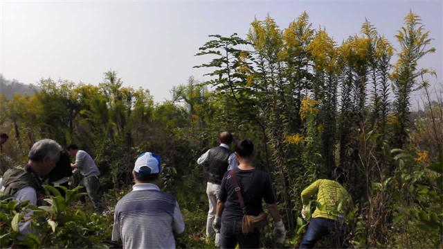 湘潭市林业局联合湘潭环保协会、昭山示范区农经局、绿色卫士湘潭大队、湘潭在线莲城论坛、红网爱心家园湘潭站、莲城清风义工协会 , 于今天上午在昭山示范区窑洲村开展清剿“加拿大一枝黄花”活动,政府工作人员、环保志愿者、义工、网友60多人顶着太阳参加活动,大家都被蚊虫叮咬,个个起陀,在近千平方坡地剿灭“加拿大一支黄花”2000余株。