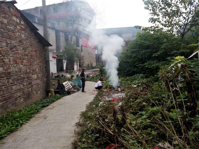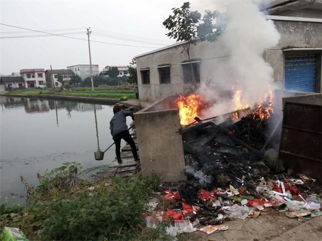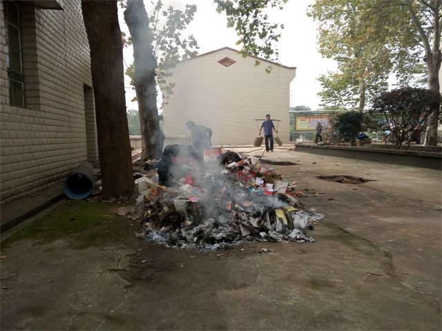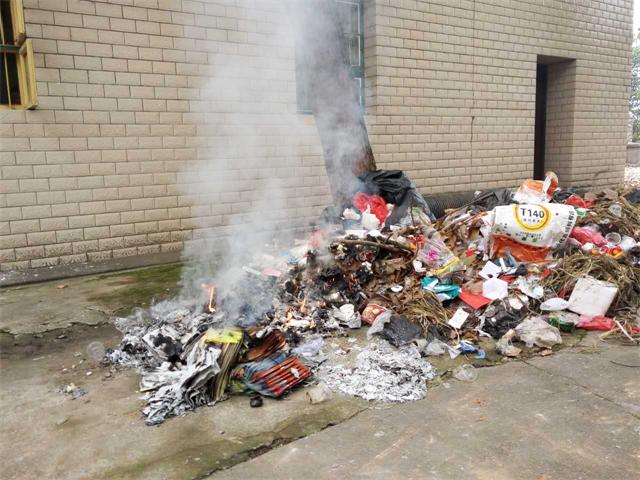 在云湖桥镇镇政府,坪里正在焚烧一堆废书、资料,和生活垃圾,向旁边做工师傅打听,他们说是镇里一个女干部烧的。这时,镇里规建环保站许站长向我解释,是因为有些文件,资料要销毁,所以就把它烧掉。我向他建议可以用碎纸机处理,也不能在镇政府机关办公的地方烧东西,一是影响不好,二是影响大家身体健康,三是影响大家工作环境,他听后马上派人把火扑灭了。后我们到达云湖桥镇政府,找到规建环保站许站长,我与他交流农村焚烧垃圾怎么处置,他告诉我没办法,虽然有政府明文规定,农村烧稻草,秸杆已有几干年历史了,农民习惯了,现在稻草不烧又没地方放,又没有利用价值,政府又没有什么办法处理,只好烧,烧了还可以做肥料,我看到他都这样的态度,就无话可说了。