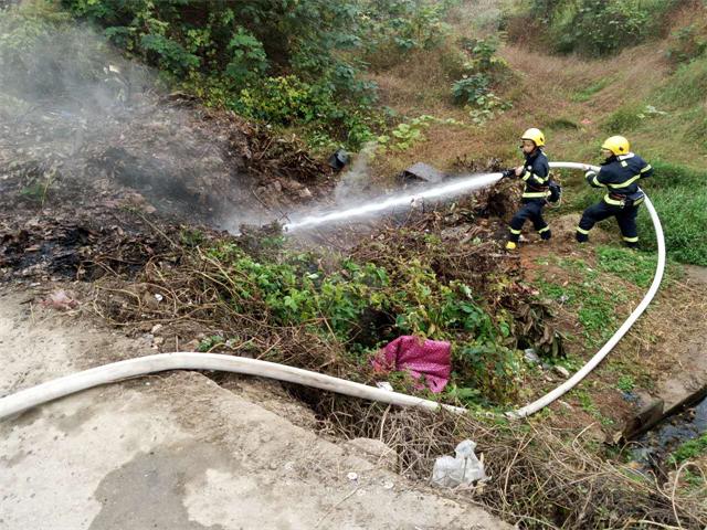 9时20分在先锋乡,先锋村京东湘潭雨湖配送站对面菜地旁发现一堆垃圾也正在焚烧,发现里面是一些包装纸盒痕迹,但没有证据,也不能肯定是他们这家单位烧的,只好在旁边另一家企业提水把火扑灭。