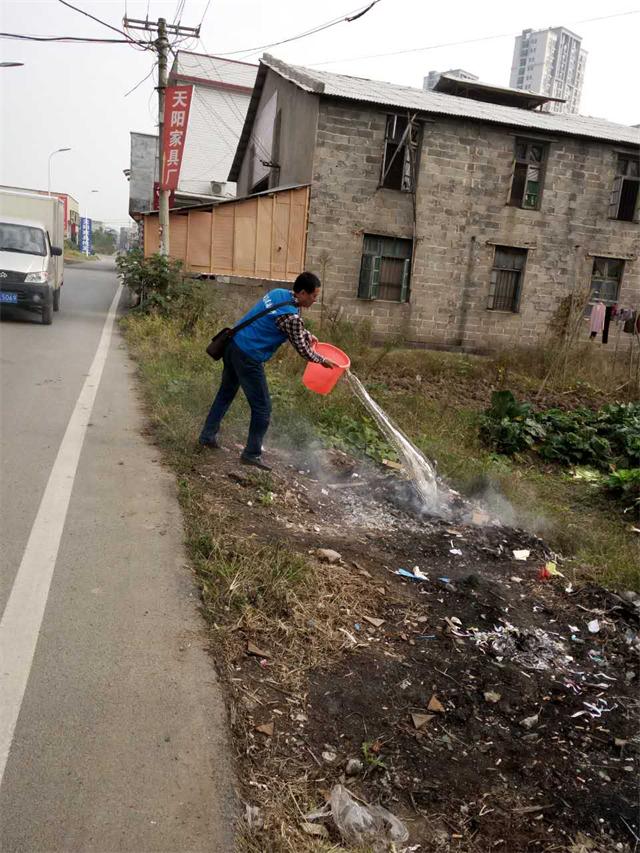 今天8时45分在雨湖区先锋乡建新村建二组马路边发现一村民正在焚烧垃圾,马上上前制止,并要他及时提水把火扑灭。并向他宣传焚烧垃圾危害。可能是他年龄大了,对环保意识不强。