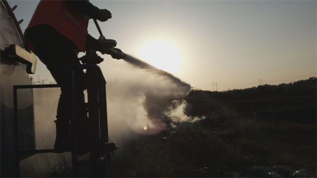 下午我们开着宣传巡查车在九华靠山边沿线巡查,大约4点20分左右在九华吉利路与保税路交叉地带路边发现到处冒烟,下车正好遇好九华管委会法制办两位同志在路边值勤(创文宣传),上前向他们了解情况,据他们介绍,大约烧了半个多钟头,不知是谁烧的。他们看到附近没什么企业,还有离马路远,就没去管。我们和他讲,虽然没什么企业在周边,但这里现在烧的是干柴,树木,叶等易燃品,今天北风这么大,附近也全是干柴。如果漫延到附近山林那就会造成大火,我马上打电话给九华政府热线,举报这里发生火灾,请求派消防过来灭火。我们大约等了半个钟头,九华城管行政执法局派了一辆洒水车过来,经过十多分钟奋战,终于把火扑灭,消灭了安全隐患。我们心里也踏实了。我们湘潭现在创文明城市考核期,如果出现一些问题,对整个湘潭都受影响,所以我们现在要处处维护。
