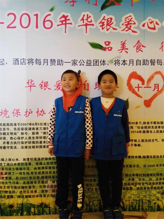 孩子们参加完活动,也留下了活动的记忆:我和彭希珺在爸爸妈妈的陪同下,参加了湘潭环保协会与华银国际大酒店共同举办的大型公益活动“孝行天下,爱在华银”,此次爱心自助餐公益活动我们作为环保协会的小义工,通过帮助餐厅服务员送餐、引领顾客落座等等机会,向所有到餐厅就餐的顾客宣传环保的重要性,号召大家积极参加环保,让环保变成我们日常生活的一部分,通过这次的活动,我觉得自己作为21世纪的主人,应该更多地参加环保工作,为环保事业贡献我小小的力量,为了我们共同的家园,用我们的双手使地球母亲恢复青春容颜。